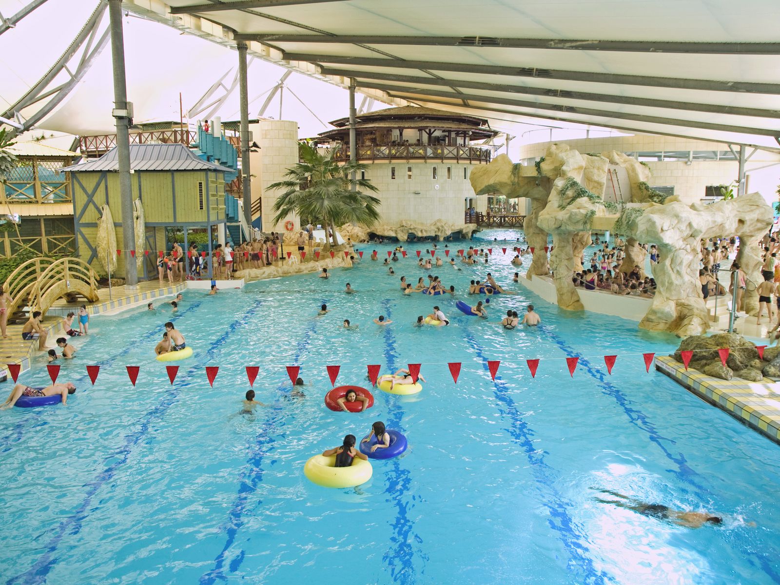 Bajo un enorme lienzo blanco de 10.000 m², las Antilles de Jonzac incluyen un área de bienestar y una laguna tropical.